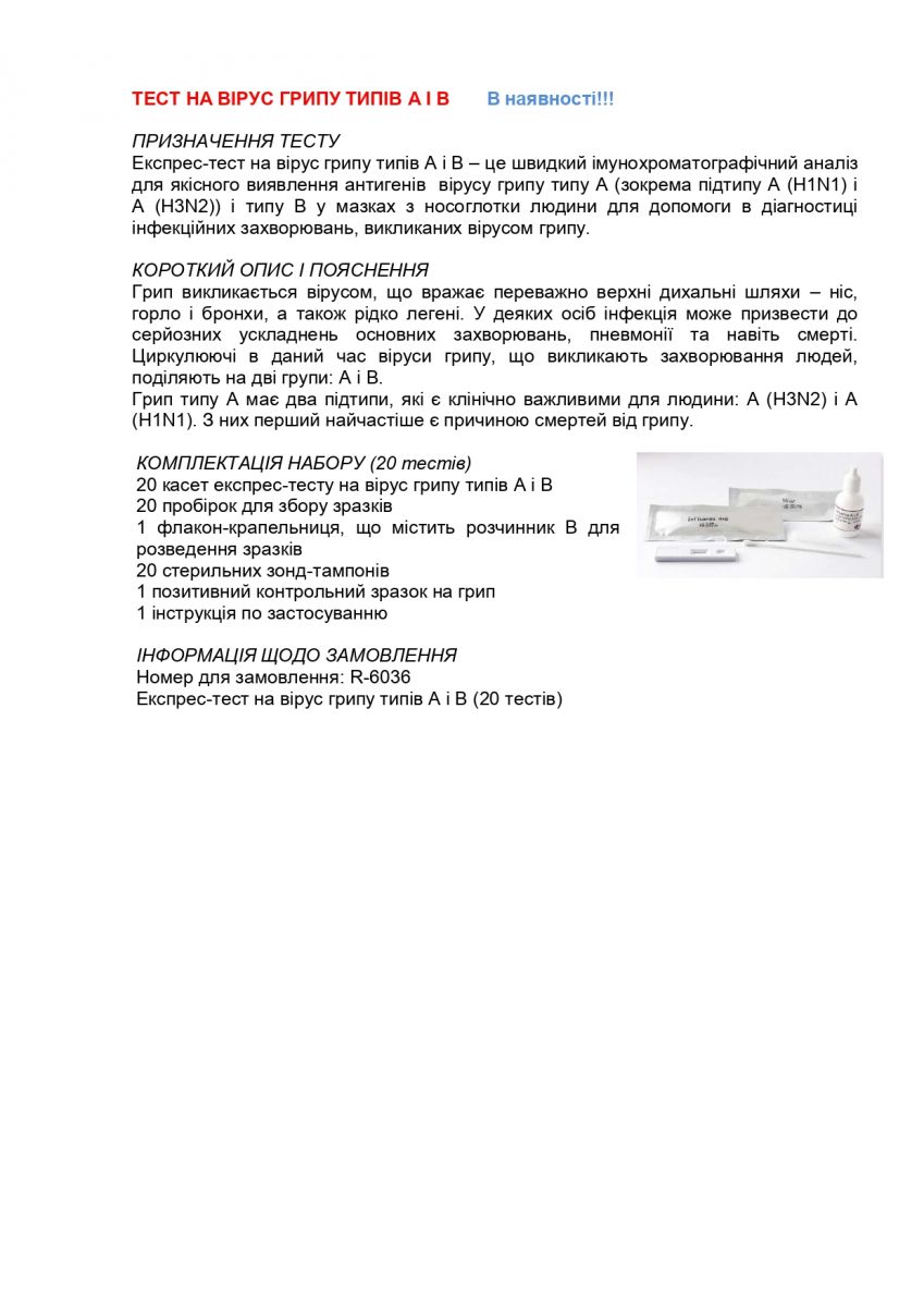 Influenza A+B One-step Assay (20 tests) виробництва NovaMed, Ізраїль                                             В наявності!!! от 27 сентября 2019